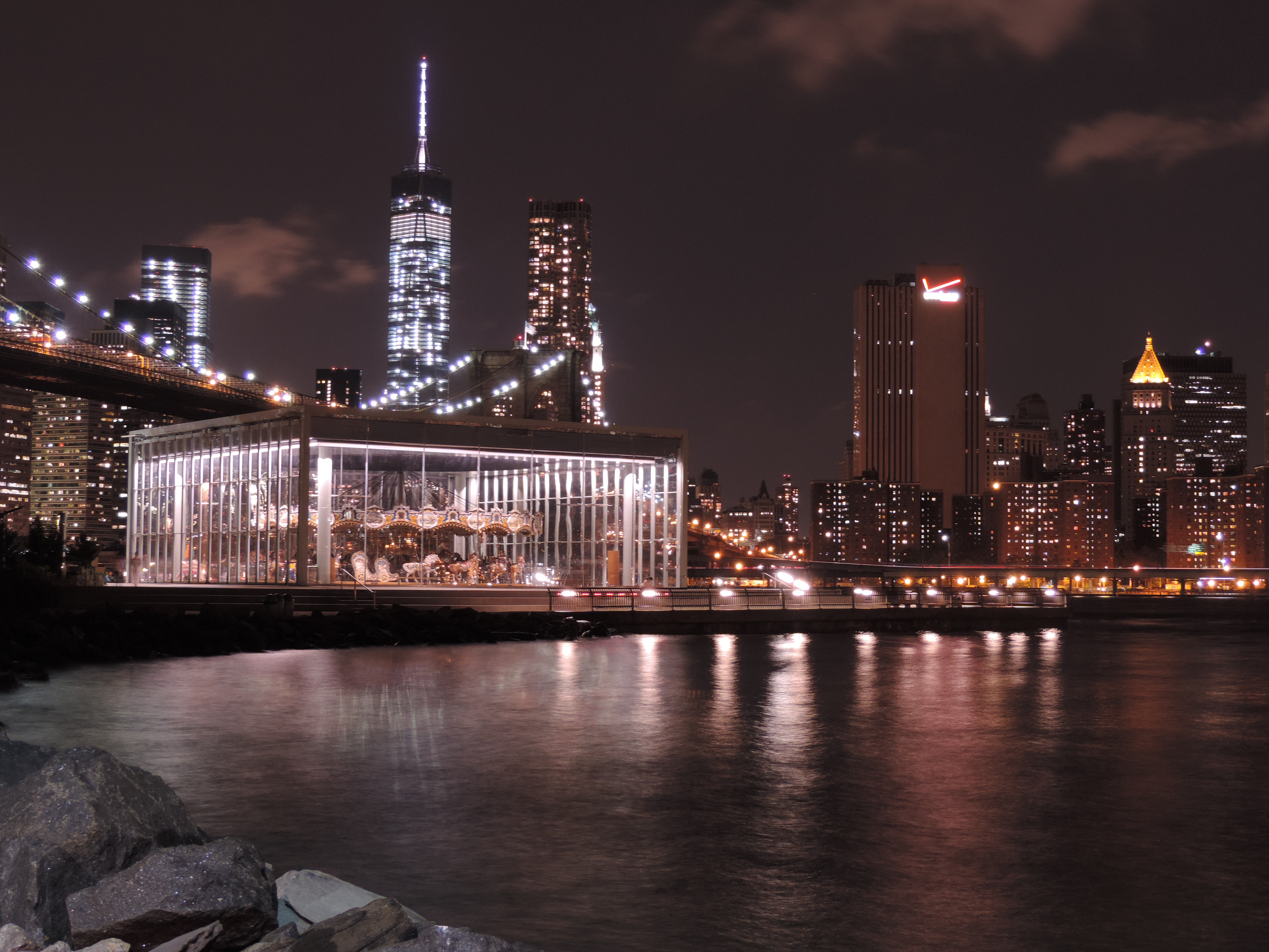 I’ve always been interested in photography, so for my last birthday my wonderful boyfriend got me a gift certificate to BKC. I’ve really gotten his moneys worth as they have a wide variety of price options. My favorite so far has been a Night Photography class where I learned the basics of shutter speed, aperture, and light exposure. We got to borrow tripods and head out in Dumbo to try out what we had learned. Here are some of my favorites: